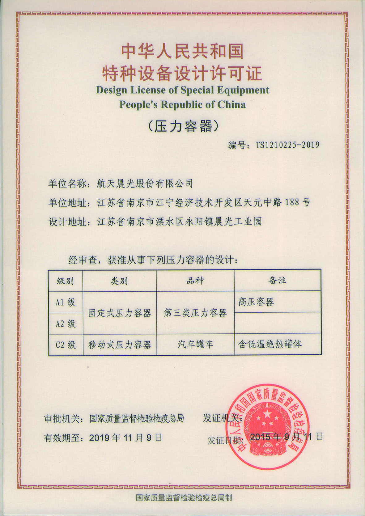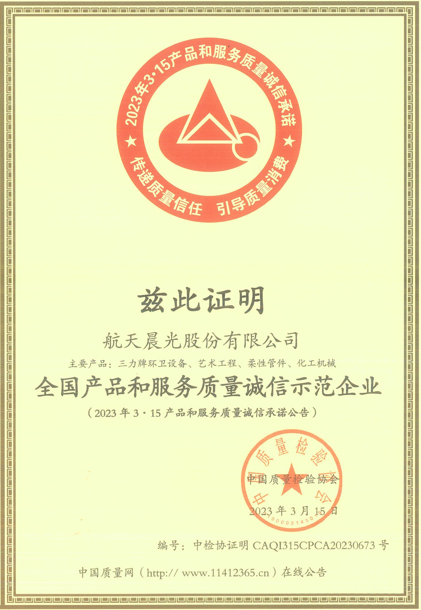 航天晨光股份有限公司  >  關于我們  >  榮譽資質