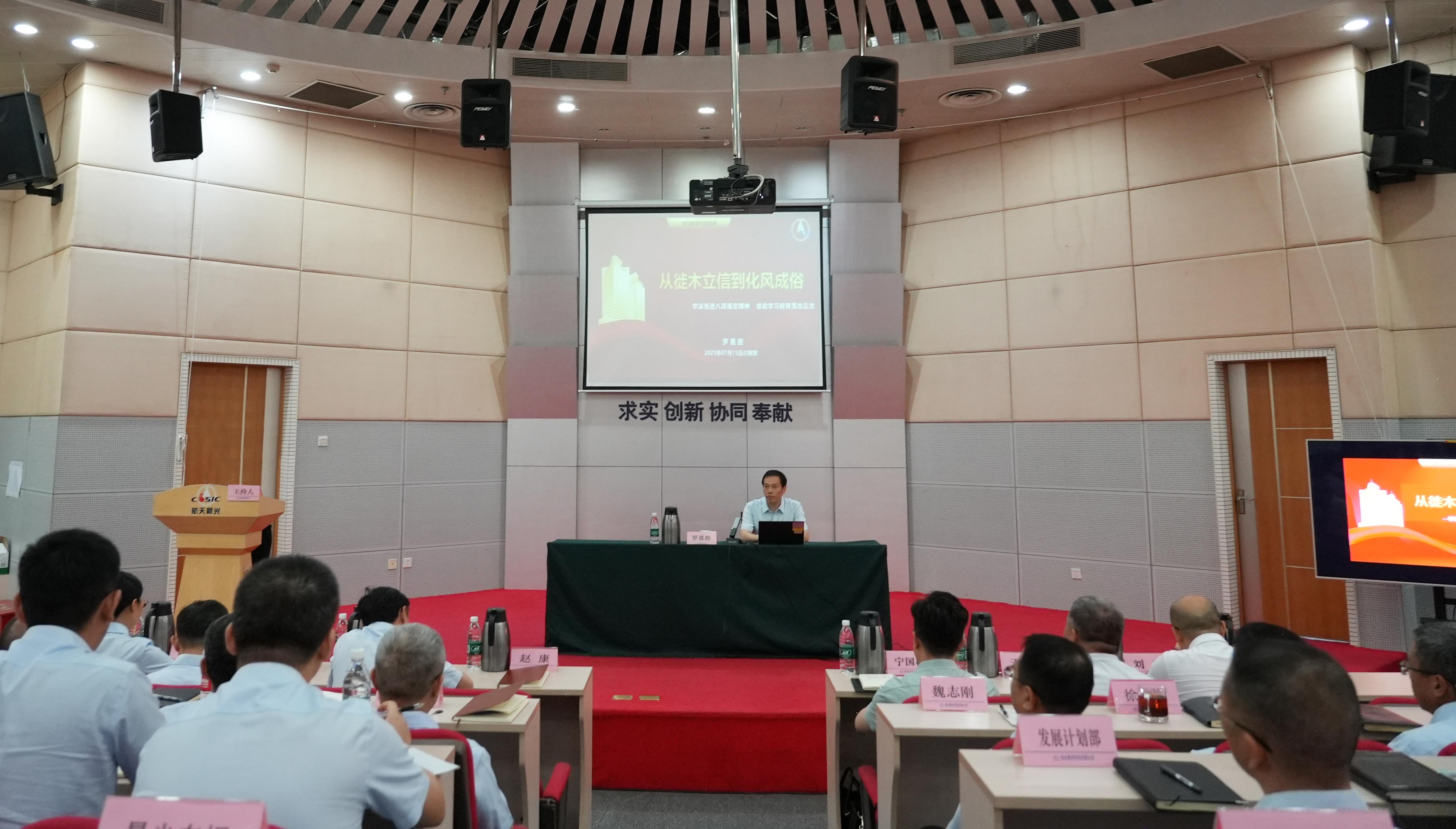 羅喜勝以《從徙木立信到化風(fēng)成俗 學(xué)深悟透中央八項規(guī)定精神 推動學(xué)習(xí)教育落地見效》為題,與黨員干部職工共同學(xué)習(xí)領(lǐng)會習(xí)近平總書記關(guān)于加強(qiáng)黨的作風(fēng)建設(shè)的重要論述和中央八項規(guī)定精神,引導(dǎo)黨員干部職工以優(yōu)良作風(fēng)凝心聚力、干事創(chuàng)業(yè),為打造“不一樣的航天科工”貢獻(xiàn)更多航天晨光力量。