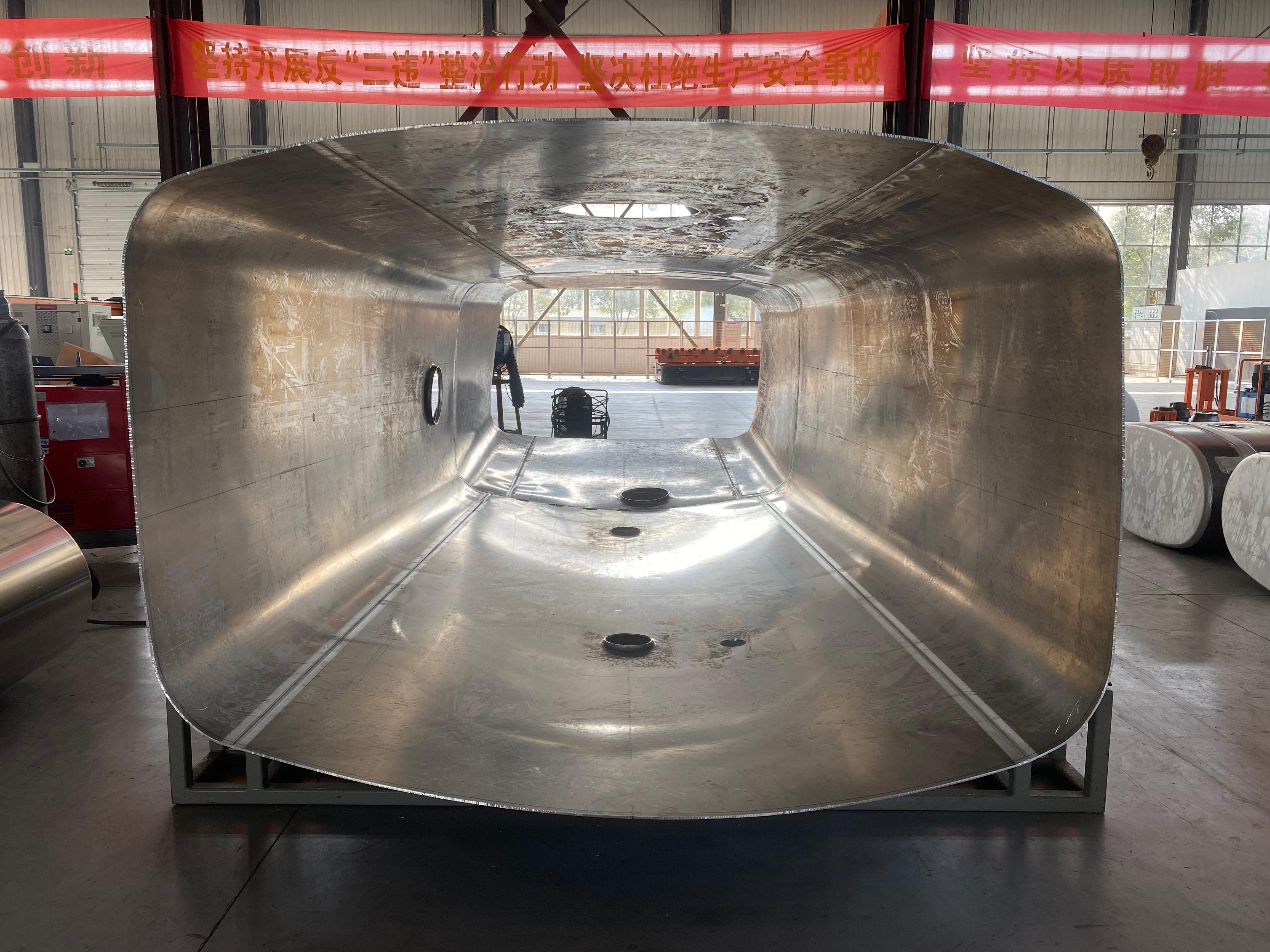 變截面錐形筒體整體由八段弧和兩段變截面直線段組成。在自動化卷制八段弧直罐的基礎上,罐體車間打破固有思維,手工跳過直線段區(qū)域,將常規(guī)異型筒體分段卷制成型程序調(diào)整為變截面錐形筒體兩段自動卷制成型程序,實現(xiàn)變截面錐形筒體在數(shù)控四輥卷板機上卷制的突破。較原車業(yè)園區(qū)三輥卷板機手工劃線分段卷制成型而言,新工藝卷制精度更高,去手工化作業(yè)更明顯,人工依賴度更低。該工藝拓展了設備的使用范圍,提高了筒體卷制精度,減小了后續(xù)工序裝配誤差,也為罐體異地生產(chǎn)降低了管理和人工成本。