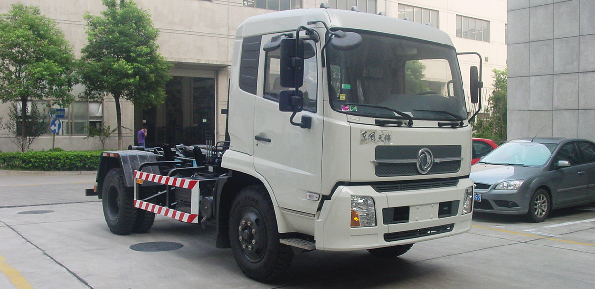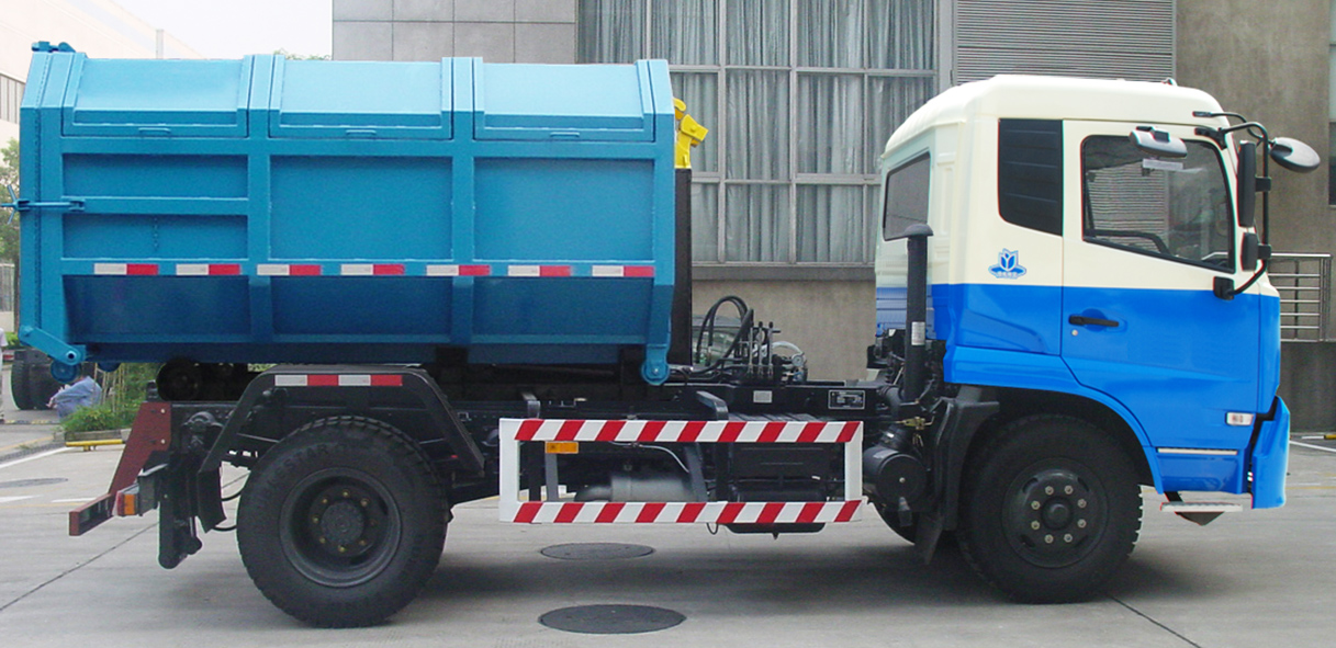 CGJ5122ZXX/CGJ5122ZXXE5型車廂可卸式垃圾車是收集居民小區、街道等處的城市生活垃圾并將其送往垃圾中轉站或將垃圾中轉站箱體運至垃圾處理場的專用車輛。